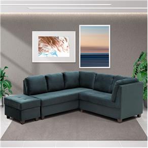 Sofá de Canto Master Royal com Puff em Tecido Suede Veludo - Petróleo